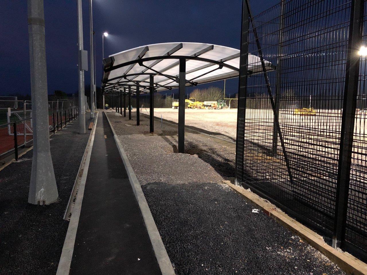 The project included a number of ancillary items including retaining structures, 10m high perimeter fencing, a state-of-the-art LED lighting system and a bespoke 48m long covered spectator canopy.